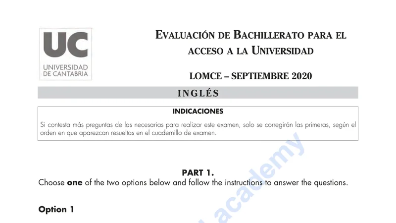 Reservar clase gratis →Examen de Inglés selectividad Cantabria (Extraordinaria 2020)