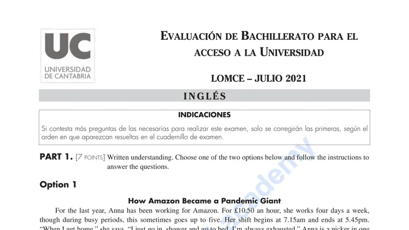 Examen de Inglés selectividad Cantabria — Extraordinaria 2021