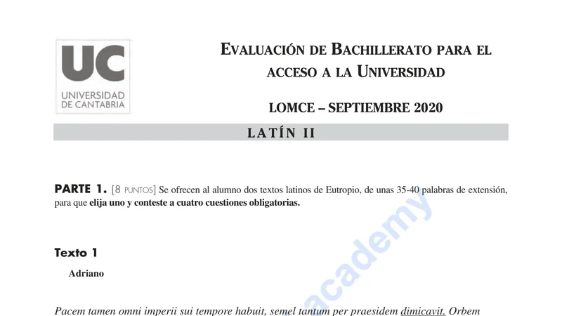 Examen de Latín II selectividad Cantabria — Extraordinaria 2020