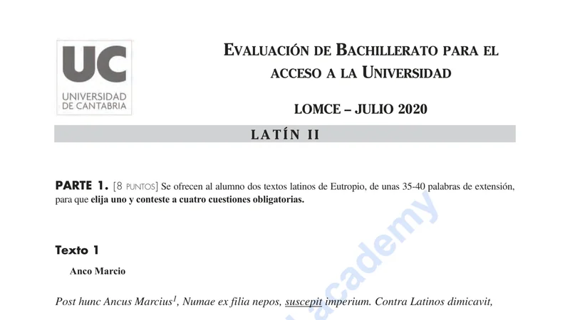 Examen de Latín II selectividad Cantabria — Ordinaria 2020