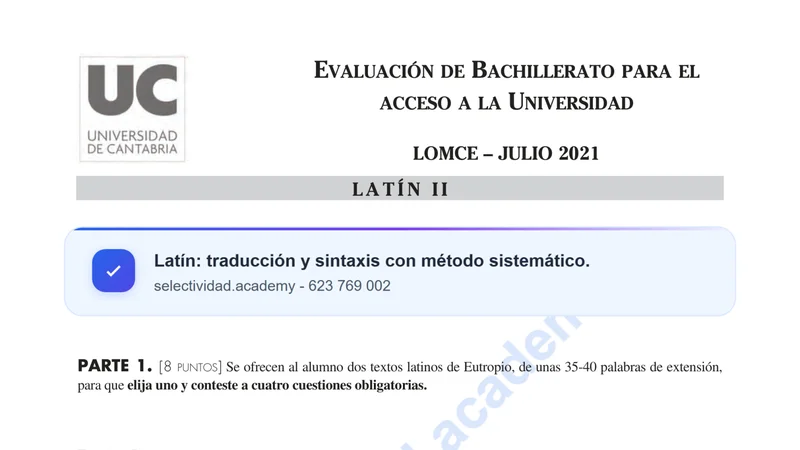 Reservar clase gratis →Examen de Latín II selectividad Cantabria (Extraordinaria 2021)