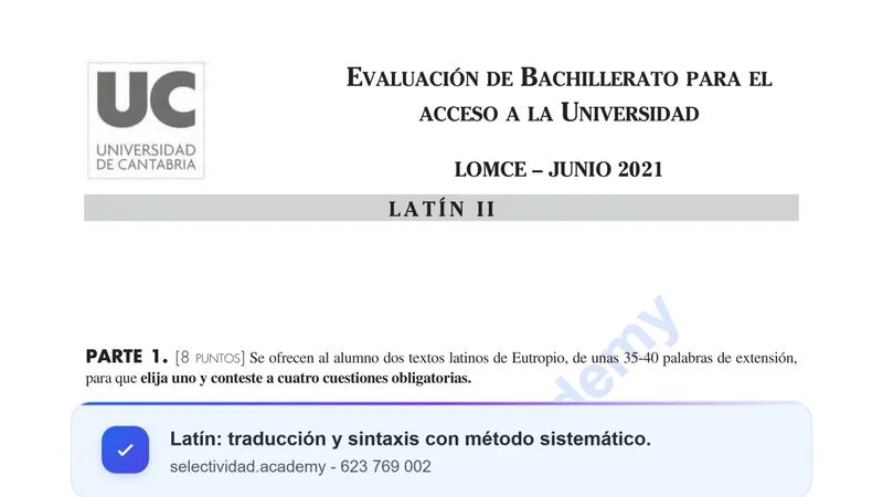 Reservar clase gratis →Examen de Latín II selectividad Cantabria (Ordinaria 2021)