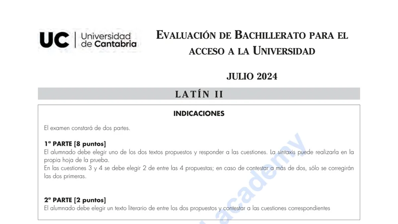 Reservar clase gratis →Examen de Latín II selectividad Cantabria (Extraordinaria 2024)