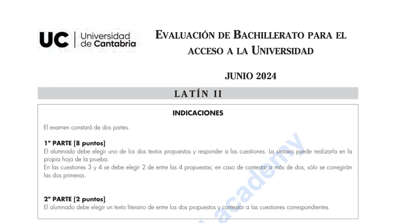 Examen de Latín II selectividad Cantabria — Ordinaria 2024