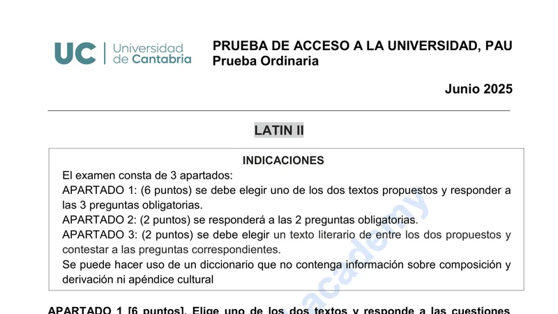 Reservar clase gratis →Examen de Latín II selectividad Cantabria (Ordinaria 2025)