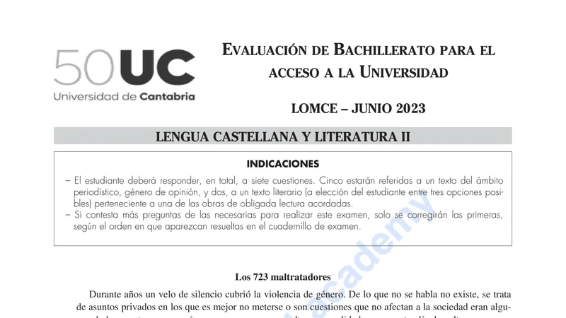 Reservar clase gratis →Examen de Lengua Castellana y Literatura selectividad Cantabria (Ordinaria 2023)