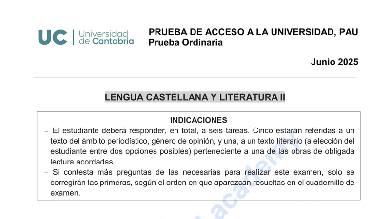 Reservar clase gratis →Examen de Lengua Castellana selectividad Cantabria (Ordinaria 2025)