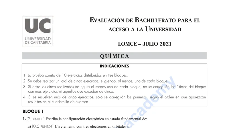 Reservar clase gratis →Examen de Química selectividad Cantabria (Extraordinaria 2021)