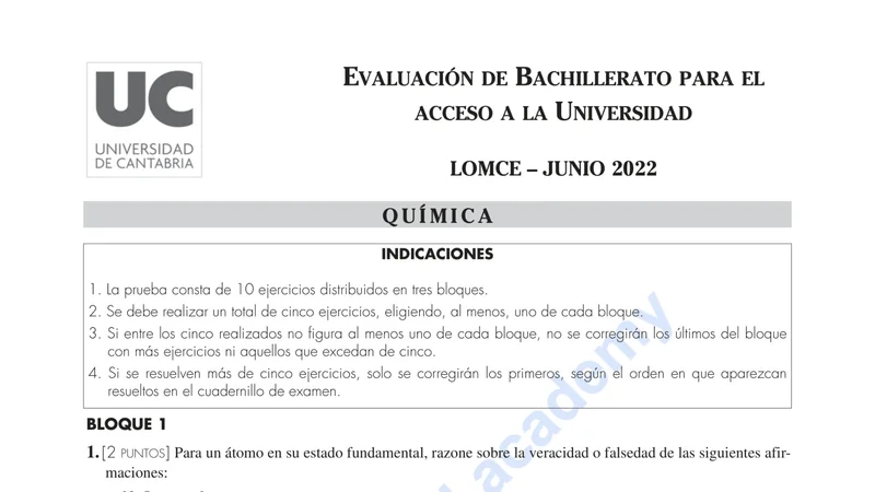 Reservar clase gratis →Examen de Química selectividad Cantabria (Ordinaria 2022)
