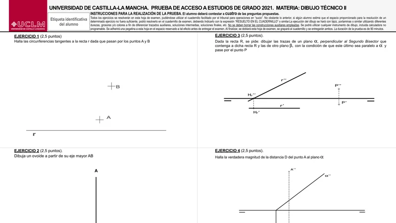 Examen de Dibujo Técnico II selectividad Castilla-La Mancha — Ordinaria 2021