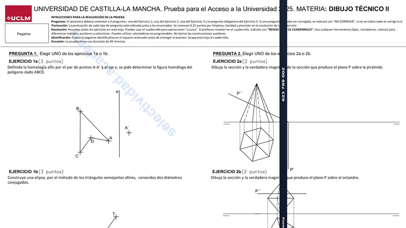 Examen de Dibujo Técnico II selectividad Castilla-La Mancha — Ordinaria 2025