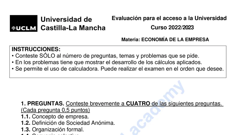 Reservar clase gratis →Examen de Economía selectividad Castilla-La Mancha (Ordinaria 2023)