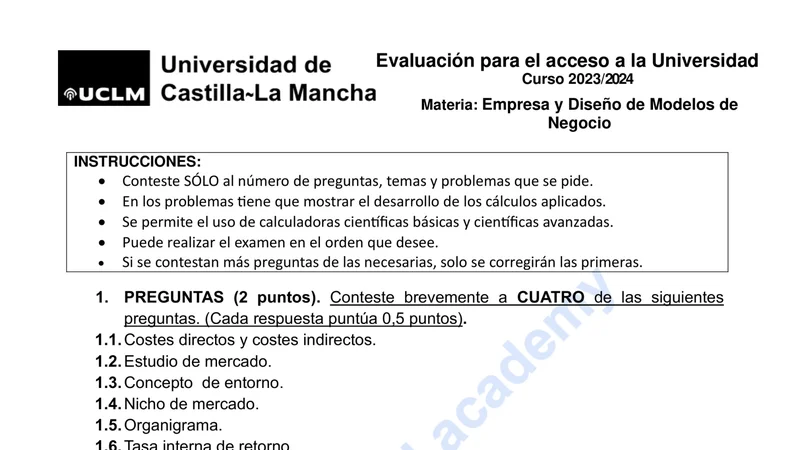 Reservar clase gratis →Examen de Economía selectividad Castilla-La Mancha (Ordinaria 2024)