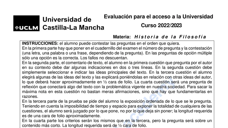 Reservar clase gratis →Examen de Historia de la Filosofía selectividad Castilla-La Mancha (Ordinaria 2023)