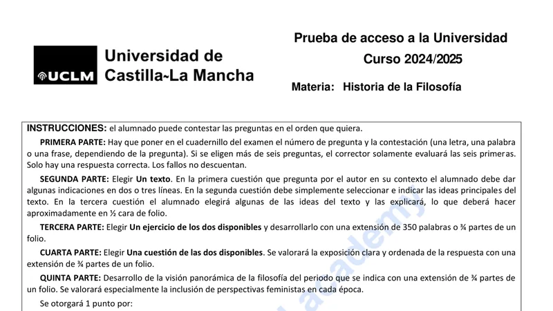 Reservar clase gratis →Examen de Historia de la Filosofía selectividad Castilla-La Mancha (Extraordinaria 2025)
