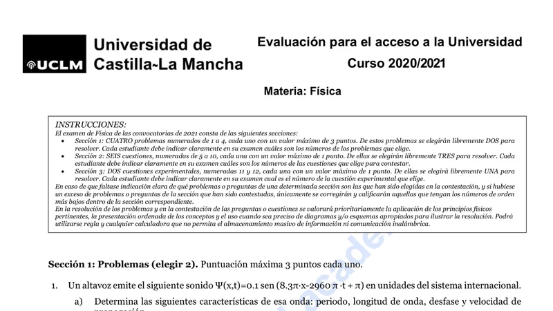 Examen PAU Física selectividad Castilla-La Mancha — Ordinaria 2021