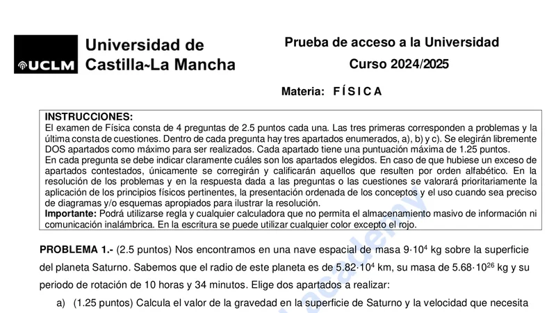 Examen de Física selectividad Castilla-La Mancha — Ordinaria 2025