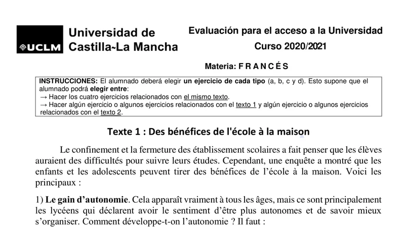 Reservar clase gratis →Examen de Francés selectividad Castilla-La Mancha (Extraordinaria 2021)