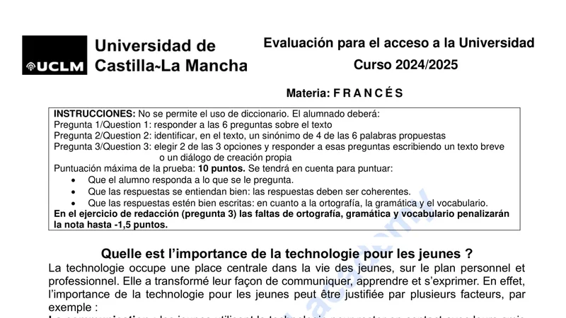 Reservar clase gratis →Examen de Francés selectividad Castilla-La Mancha (Ordinaria 2025)