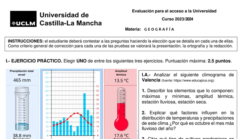 Reservar clase gratis →Examen de Geografía selectividad Castilla-La Mancha (Ordinaria 2024)