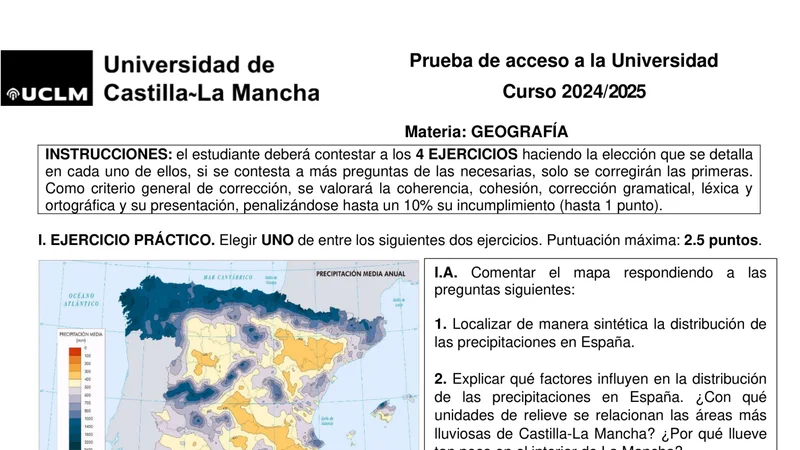 Reservar clase gratis →Examen de Geografía selectividad Castilla-La Mancha (Extraordinaria 2025)