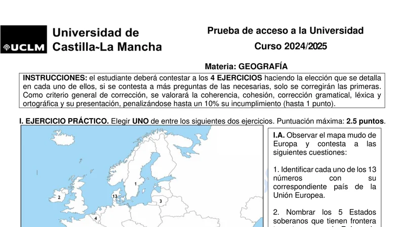 Reservar clase gratis →Examen de Geografía selectividad Castilla-La Mancha (Ordinaria 2025)