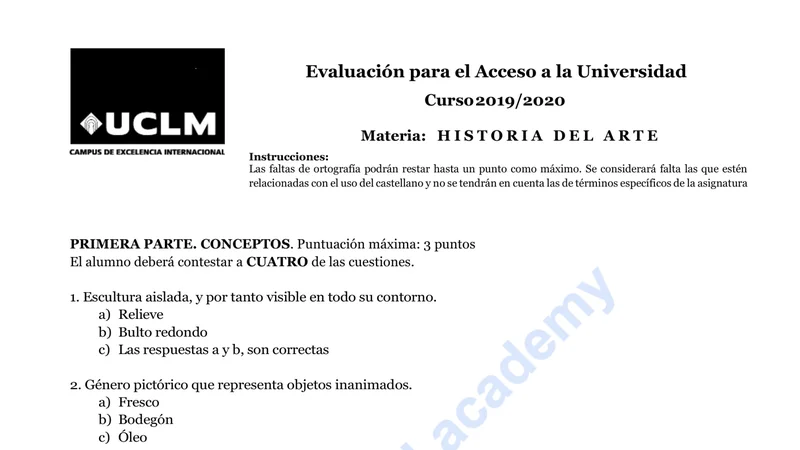 Examen PAU Historia del Arte selectividad Castilla-La Mancha — Extraordinaria 2020