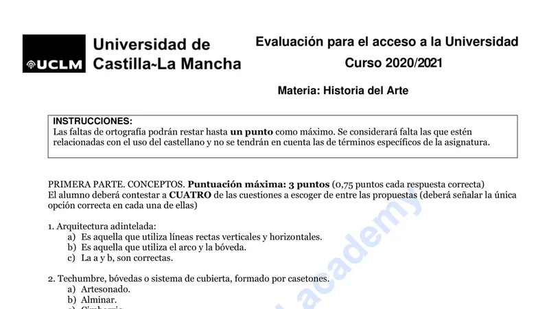 Reservar clase gratis →Examen de Historia del Arte selectividad Castilla-La Mancha (Ordinaria 2021)