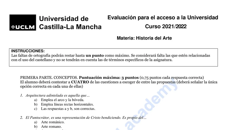 Reservar clase gratis →Examen de Historia del Arte selectividad Castilla-La Mancha (Ordinaria 2022)