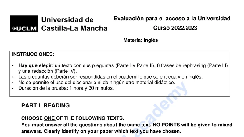 Examen de Inglés selectividad Castilla-La Mancha — Ordinaria 2023
