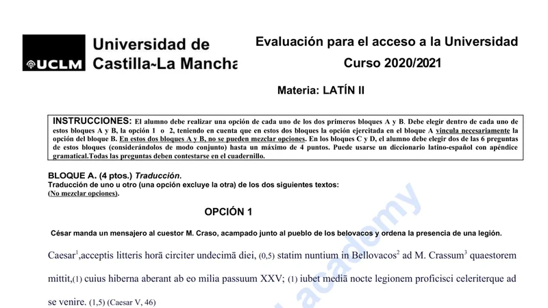 Examen PAU Latín II selectividad Castilla-La Mancha — Extraordinaria 2021