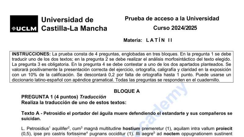 Reservar clase gratis →Examen de Latín II selectividad Castilla-La Mancha (Extraordinaria 2025)