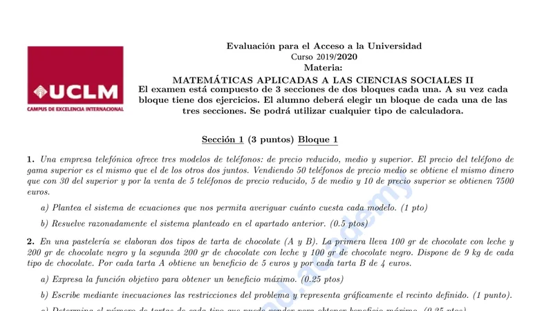 Reservar clase gratis →Examen de Matemáticas CCSS selectividad Castilla-La Mancha (Ordinaria 2020)