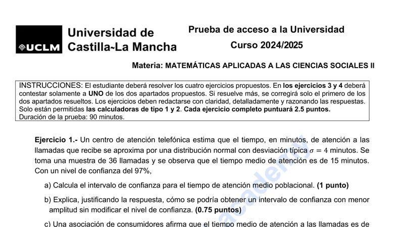 Reservar clase gratis →Examen de Matemáticas Aplicadas CCSS selectividad Castilla-La Mancha (Ordinaria 2025)