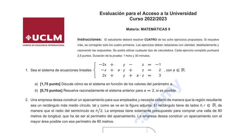 Reservar clase gratis →Examen de Matemáticas II selectividad Castilla-La Mancha (Ordinaria 2023)