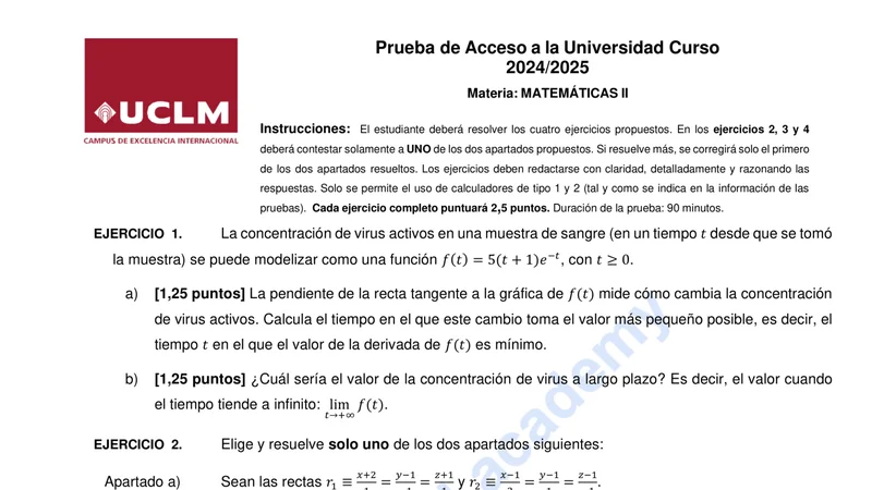 Reservar clase gratis →Examen de Matemáticas II selectividad Castilla-La Mancha (Ordinaria 2025)