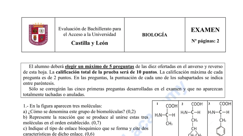 Reservar clase gratis →Examen de Biología selectividad Castilla y León (Extraordinaria 2022)