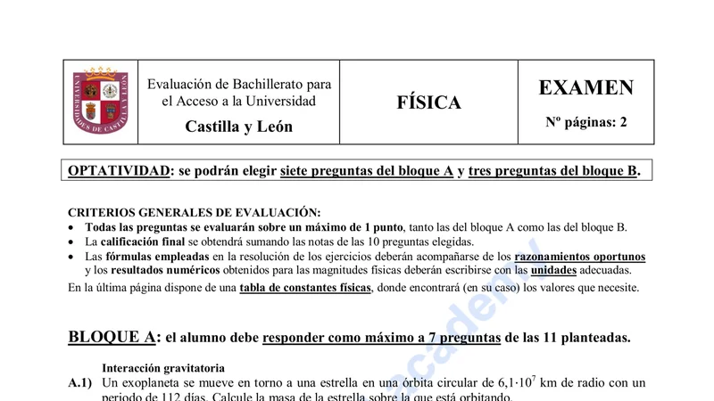 Más exámenes de Física en Castilla y León
