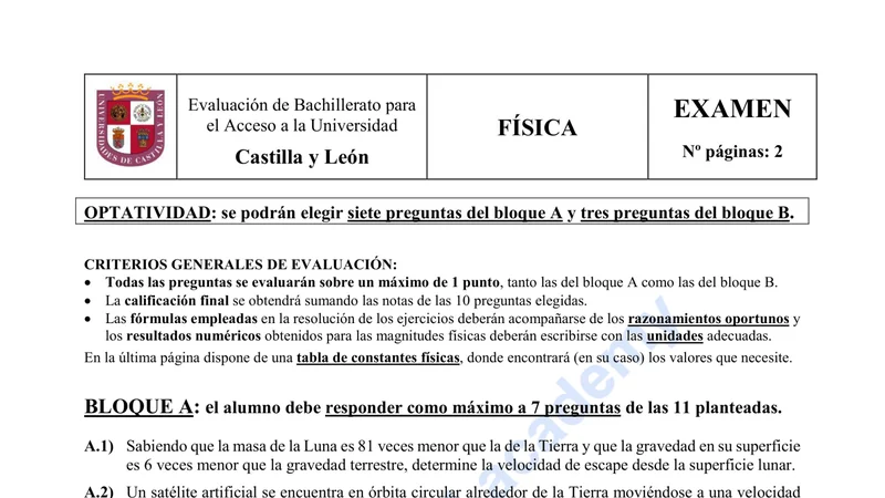 Reservar clase gratis →Examen de Física selectividad Castilla y León (Ordinaria 2024)