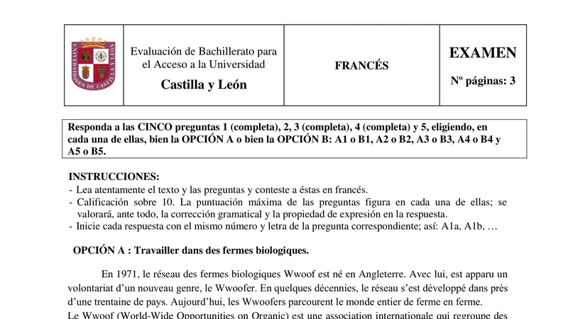 Reservar clase gratis →Examen de Francés selectividad Castilla y León (Ordinaria 2020)