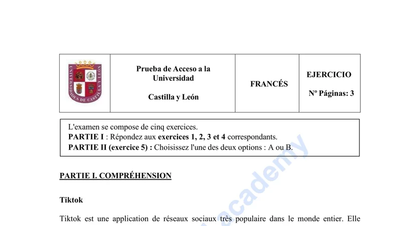 Reservar clase gratis →Examen de Francés selectividad Castilla y León (Ordinaria 2025)