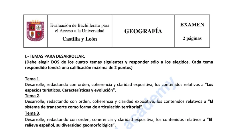 Reservar clase gratis →Examen de Geografía selectividad Castilla y León (Extraordinaria 2021)