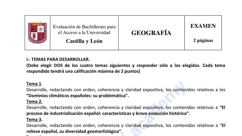 Reservar clase gratis →Examen de Geografía selectividad Castilla y León (Ordinaria 2021)