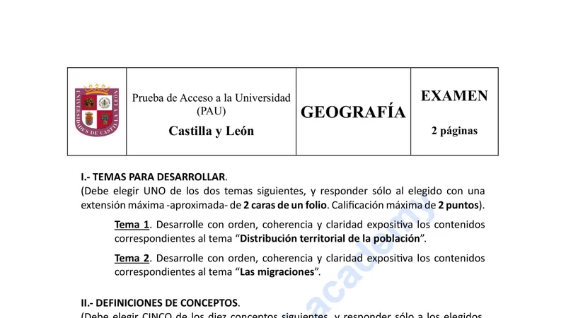 Reservar clase gratis →Examen de Geografía selectividad Castilla y León (Ordinaria 2025)