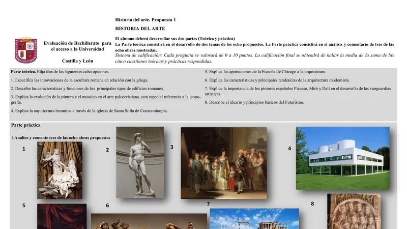 Examen PAU Historia del Arte selectividad Castilla y León — Ordinaria 2020