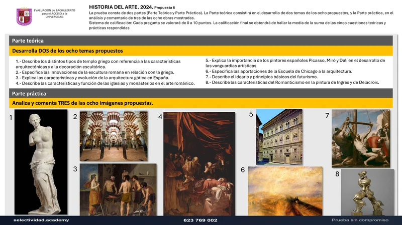 Reservar clase gratis →Examen de Historia del Arte selectividad Castilla y León (Extraordinaria 2024)