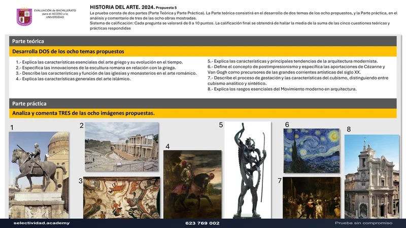 Examen PAU Historia del Arte selectividad Castilla y León — Ordinaria 2024