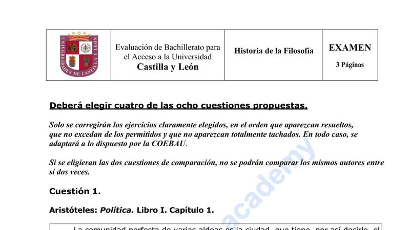 Reservar clase gratis →Examen de Historia de la Filosofía selectividad Castilla y León (Ordinaria 2022)