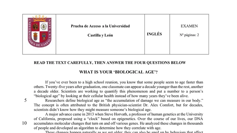 Enunciado oficial del examen de Inglés de la convocatoria extraordinaria de 2025 de la EBAU/PAU de Castilla y León. PDF de 0.2 MB. Descarga gratuita y sin registro. ¿Preparando la selectividad? Calcula tu nota estimada o consulta la guía completa de selectividad 2026. Encuentra todos los exámenes de Inglés en Castilla y León o explora las 17 comunidades autónomas.