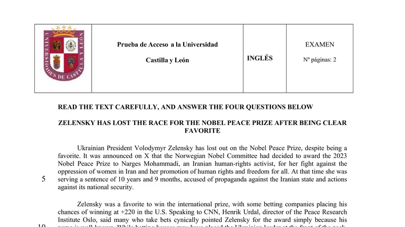 Reservar clase gratis →Examen de Inglés selectividad Castilla y León (Ordinaria 2025)